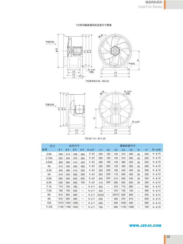 Iit is the substitute product of 30K-4 type axial fan. BT35 is used for ventilation in placesthat contain flammable, explosive and corrosive gases; And T35 is used for ventilation andcooling in factones, ffices, houses and etc, it is also senes nstalled in longer pipeline toraise the air pressure in pipeline. The air transterred shall not be corrosive with notabledust, the temperature of the air shall not exceed 50C.