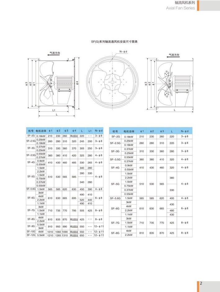 SF(G) senes are featured by low noise, large air volume, electicitysaving, rational structure and etc, whose blades are desi