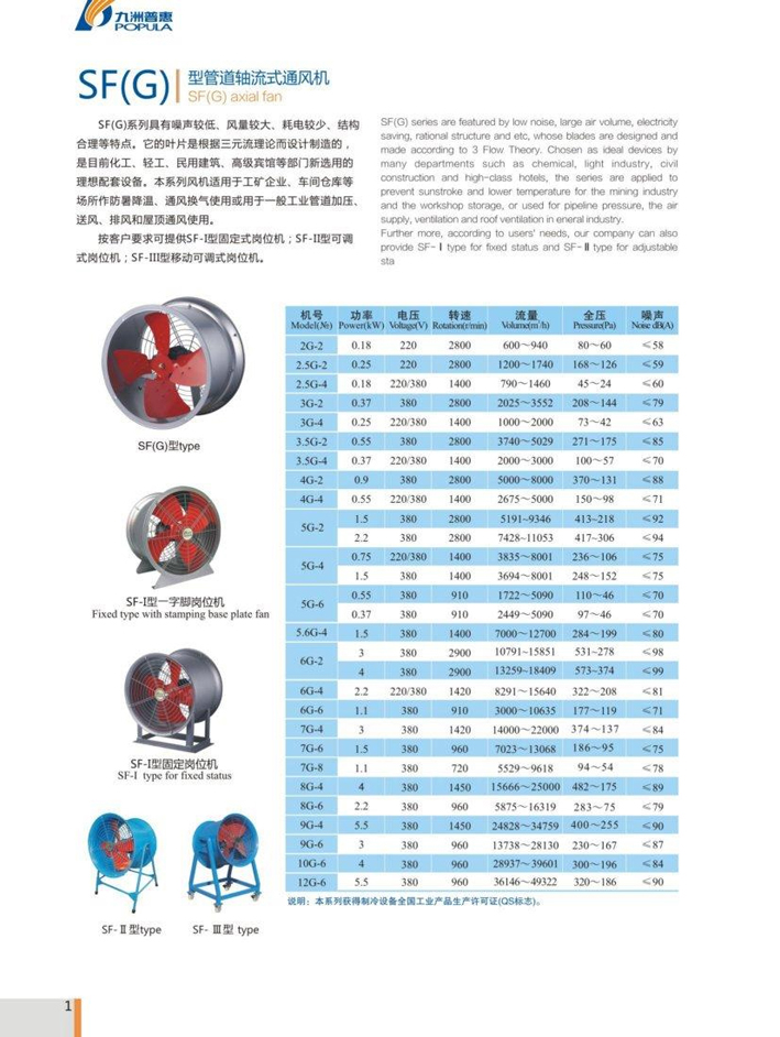 SF(G)系列具有噪声较低、风量较大、耗电较少、结构合理等特点。它的叶片是根据三元流理论而设计制造的,是目前化工、