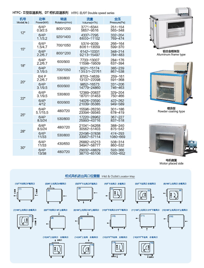 contain any adhesive material, dustand grain and the concentrationshall not exceed 150 mg/m', withthe temperature no higher than 80C,When the HTFC series are used forfire control, the fans can run morethan 30 minutes continually underthe condition thattheairandsmoketemperature