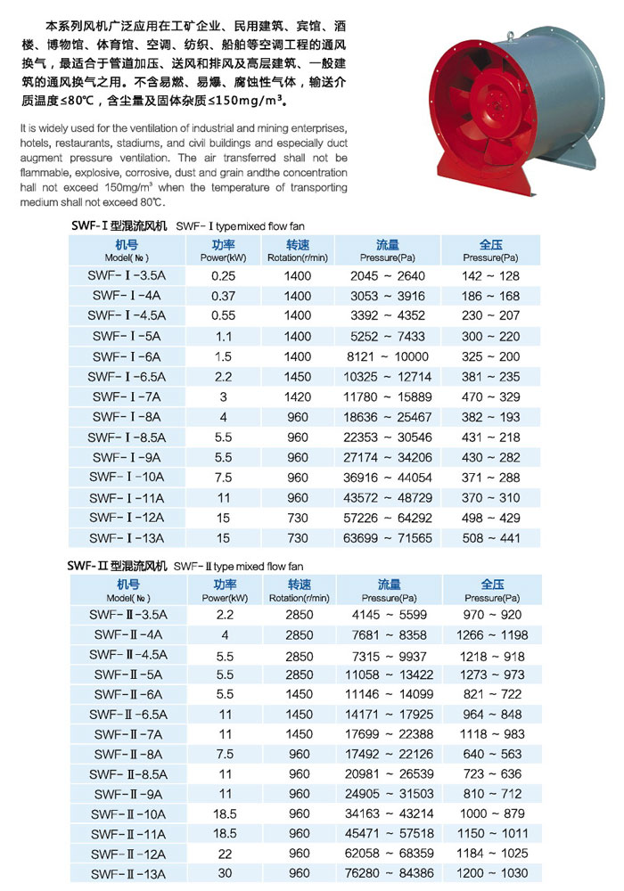 SWF混流通风机mixed flow fan