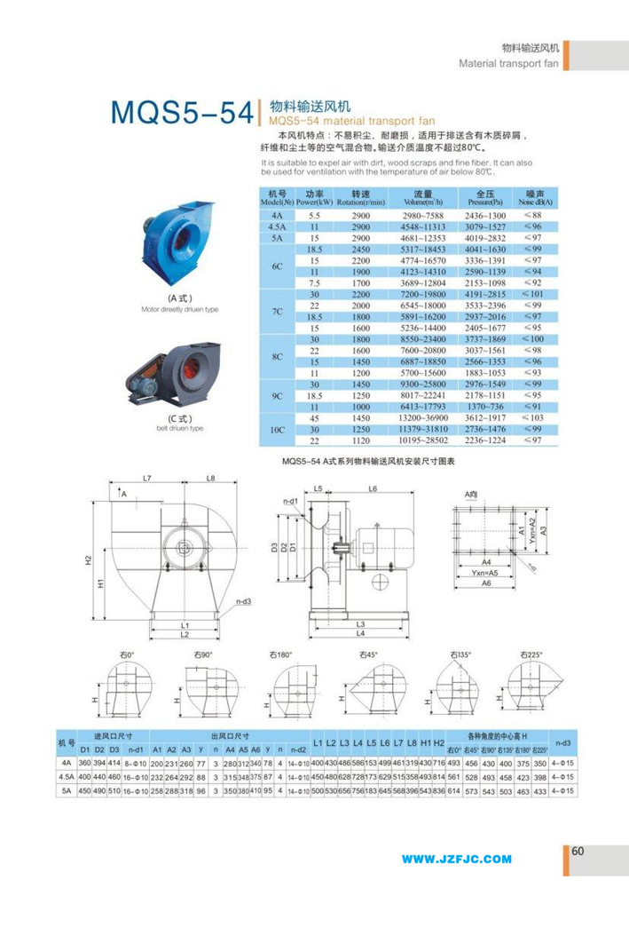 本风机特点:不易积尘、耐磨损,适用于排送含有木质碎屑,纤维和尘土等的空气混合物。输送介质温度不超过80°C.