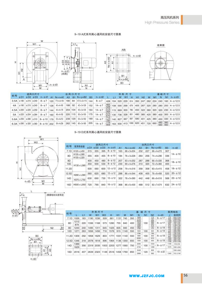 9-19系列风机一般用于锻冶炉、玻璃、电池、 无线电、电镀陶瓷等行业高压强