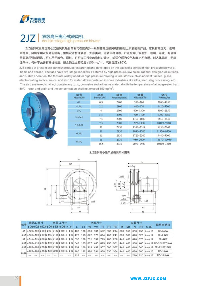 2JZ系列双级高压离心式鼓风机是目前我司在国内外一系列的高压鼓风机的基础上研发的新产品、它具有高压力、低噪声特点,