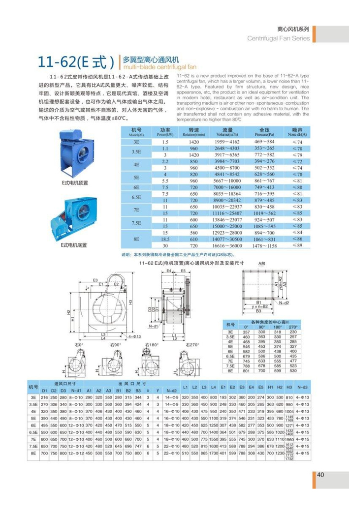 11-62(E式) 多翼型离心通风机multi- blade centnfuga