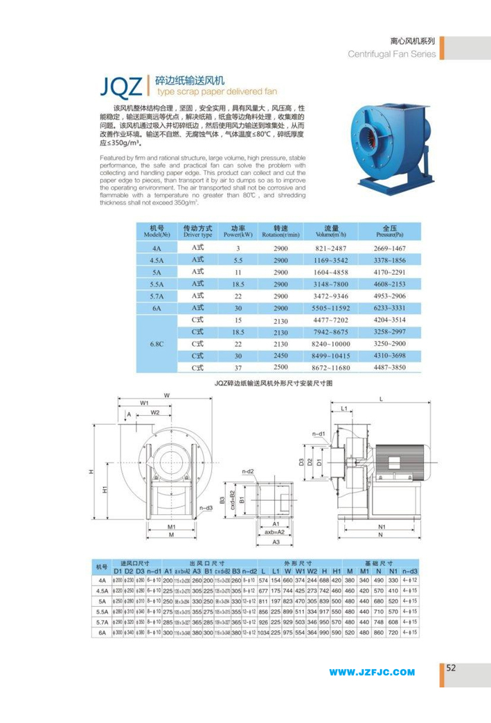 JQZl碎边纸输送风机type scrap paper delivered fan能箱该风机整体结构合理,坚固 ,安全实用具有风量大,风压高,