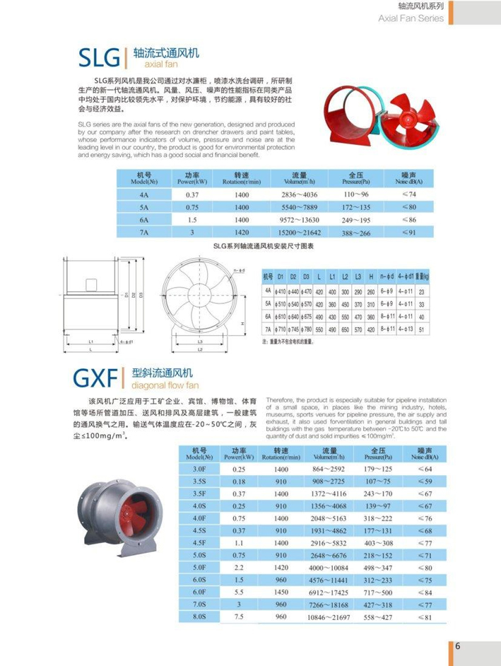 SLG系列风机是我公司通过对水濂柜,喷漆水洗台调研,所研制生产的新一代轴流通风机。风量、风压、噪声的性能指标