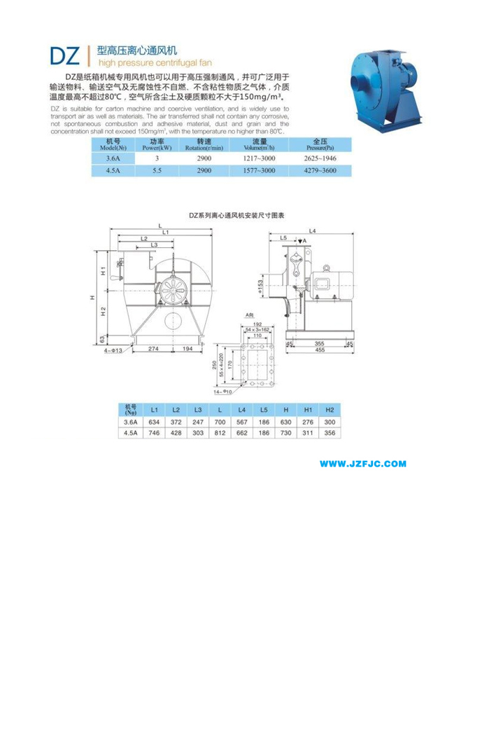 DZ是纸箱机械专用风机也可以用于高压强制通风,并可广泛用于输送物料、输送